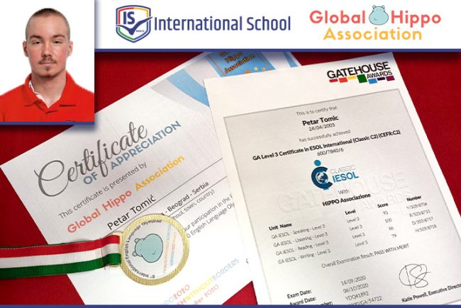 Da li se sećate koliko smo samo bili ponosni na Petra Tomića, učenika Year 12, kada je prikazao neverovatan rezultat i plasirao se u finalnu rundu takmičenja? E pa Petar je bio sjajan u finalnoj rundi i njegov ukupan rezultat glasi: Položio sa zaslugama. Globalna HIPPO asocijacija Takmičenje „Hippo English Without Borders” je internacionalno takmičenje…