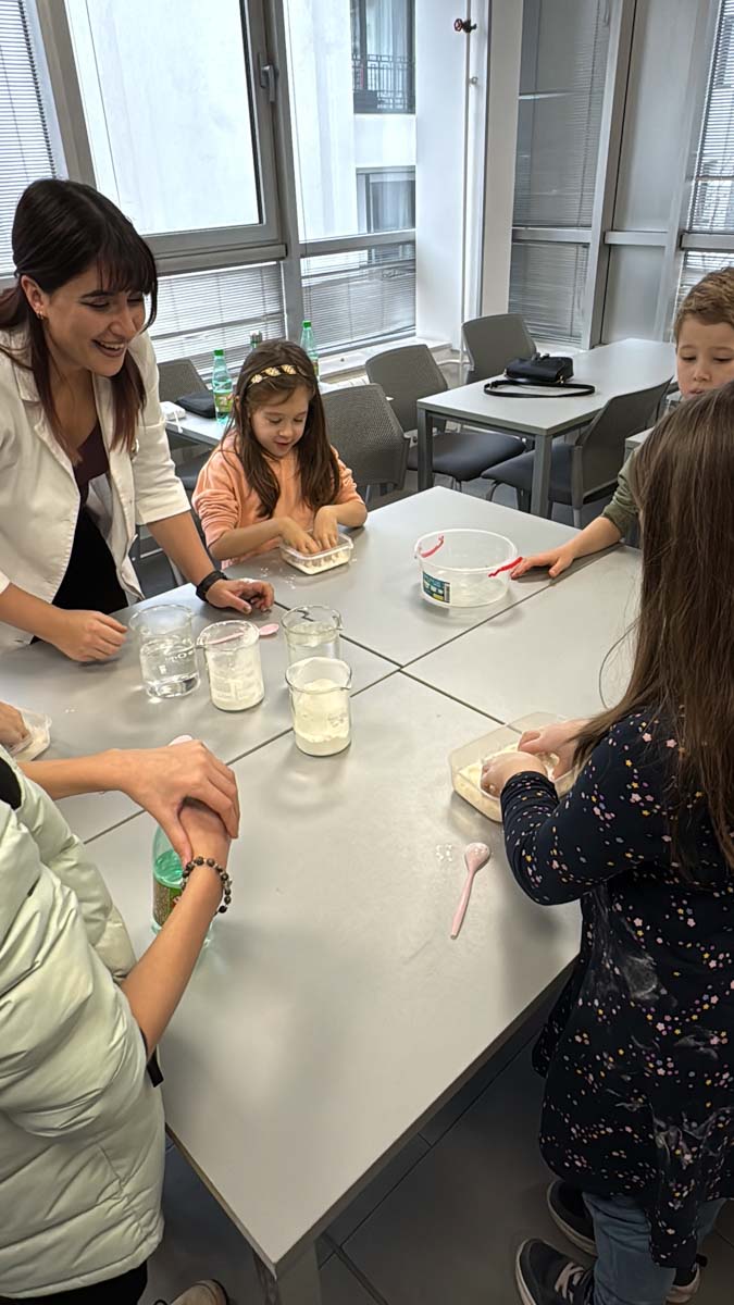 In the chemistry class, students took part in a series of exciting experiments that brought science to life. They created oobleck, explored how detergents work, and learned how artificial blood is made for use in special effects.