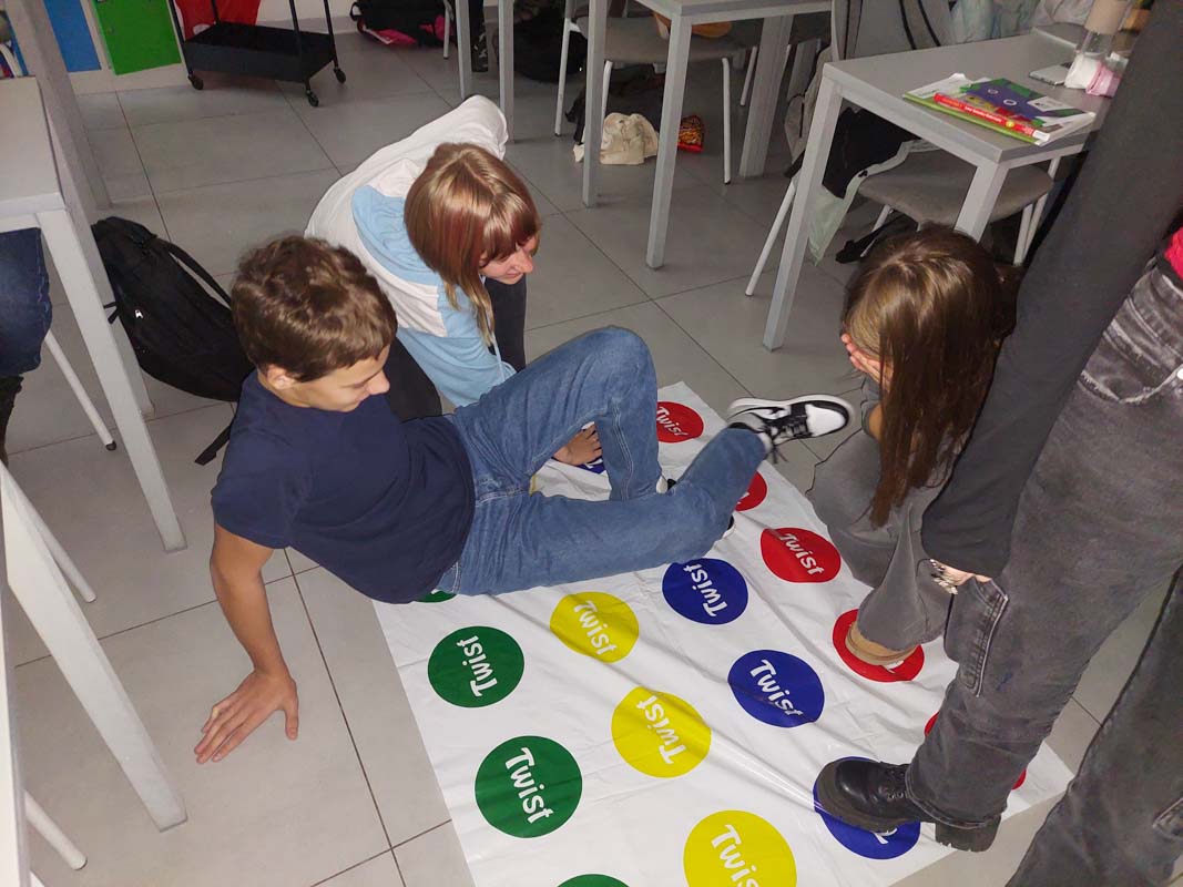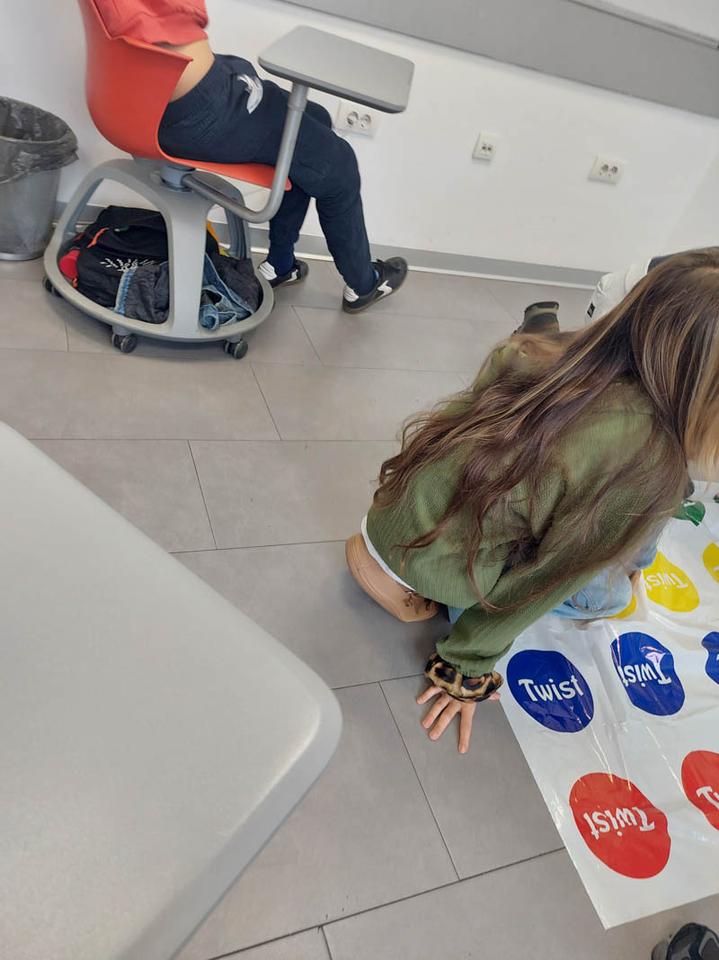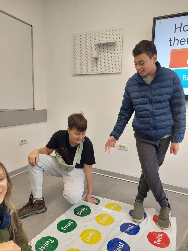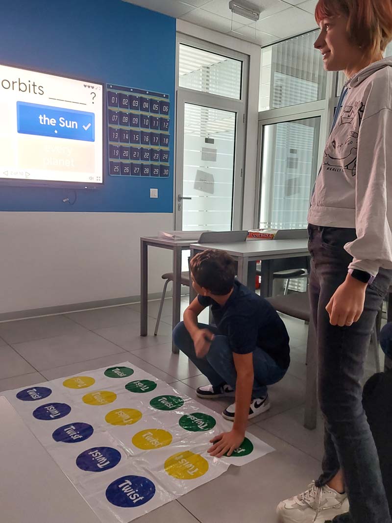 Umesto tradicionalnog časa za obnavljanje gradiva, učenici su koristili dobro poznatu igru Twister kako bi proverili svoje znanje. Uz svaki pokret koji bi napravili na Twister prostirci, morali su da odgovore na pitanje vezano za gradivo – istovremeno izazivajući svoje razumevanje naučnih pojmova i fizičku koordinaciju.