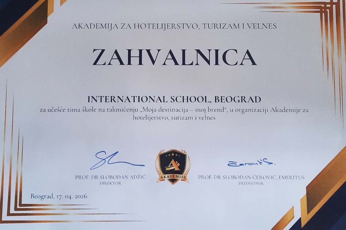 Učenici naše škole nedavno su učestvovali na takmičenju „My Destination – My Brand“, koje je organizovala Akademija za hotelijerstvo, turizam i velnes, gde su imali priliku da svoje znanje primene u realnom i kreativnom okruženju.
